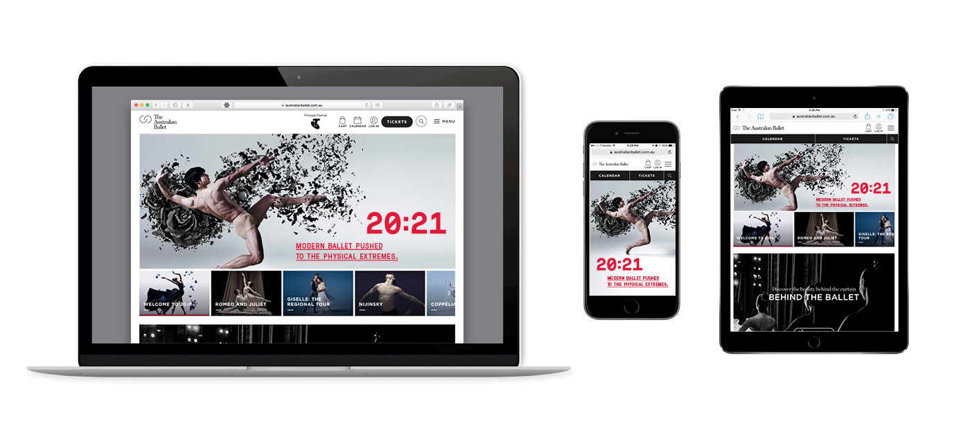 20:21 / Each year The Australian Ballet performs a triple bill of contemporary ballets. 2015 was “the year of beauty” visually conveyed in floral elements throughout The Australian Ballet’s marketing campaign. Qube Konstrukt was engaged to create the dynamic 20:21 hero image of dancer Chengwu Guo with the shattered black rose. Highlights of red in the typography link to the red pointe shoes worn by the dancers in the final performance, Twyla Tharp’s In the Upper Room set to the driving music of Philip Glass.